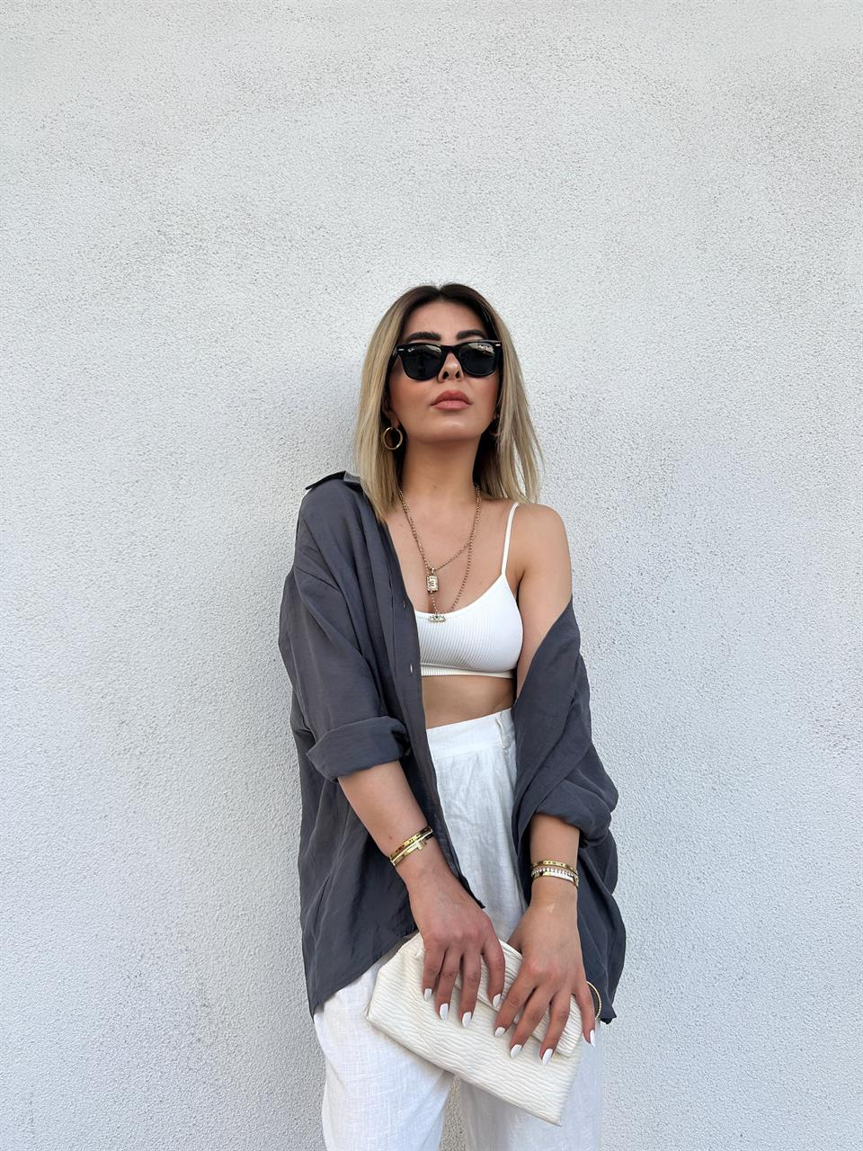 Antrasit Oversize Tensel Gömlek