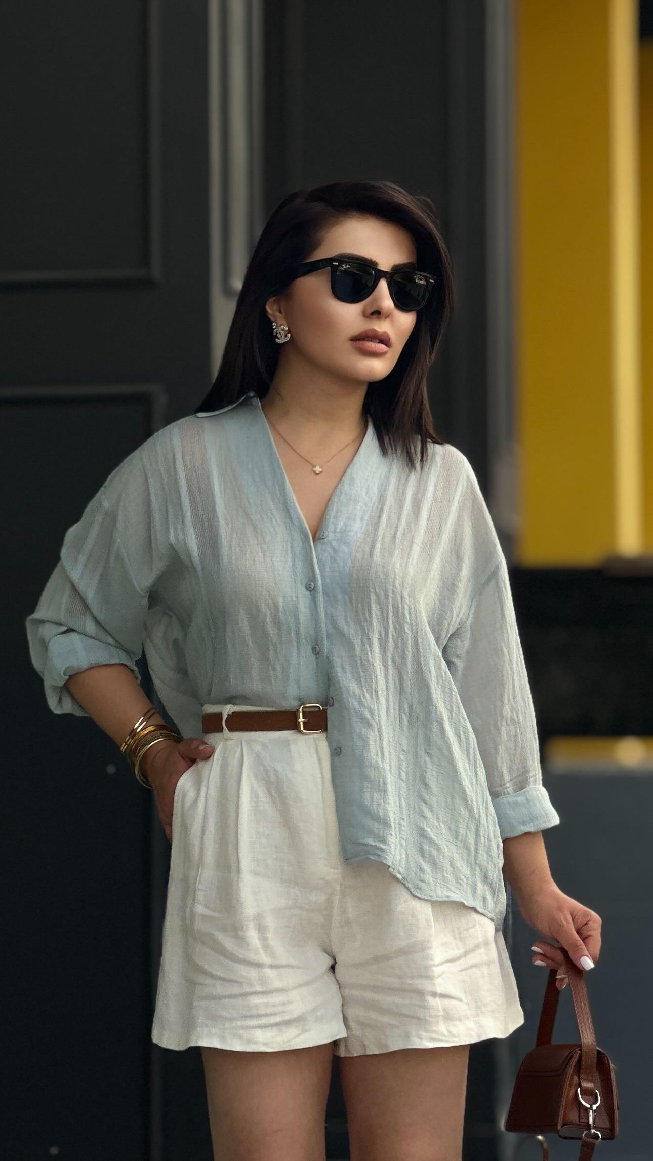 Bebe Mavi Kendinden Çizgili Transparan Gömlek