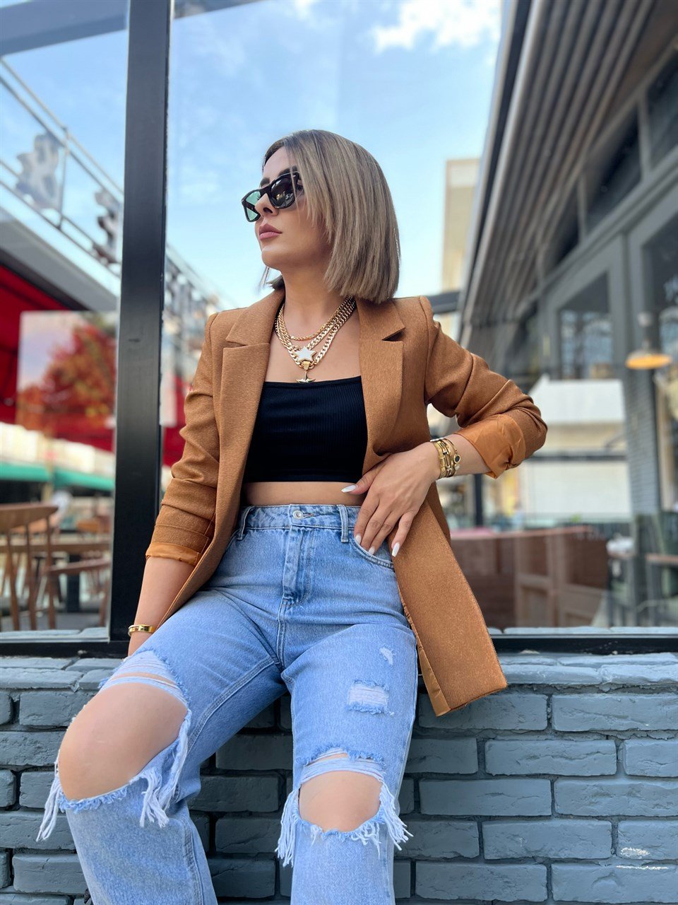 Camel Yün Efekt Blazer Ceket