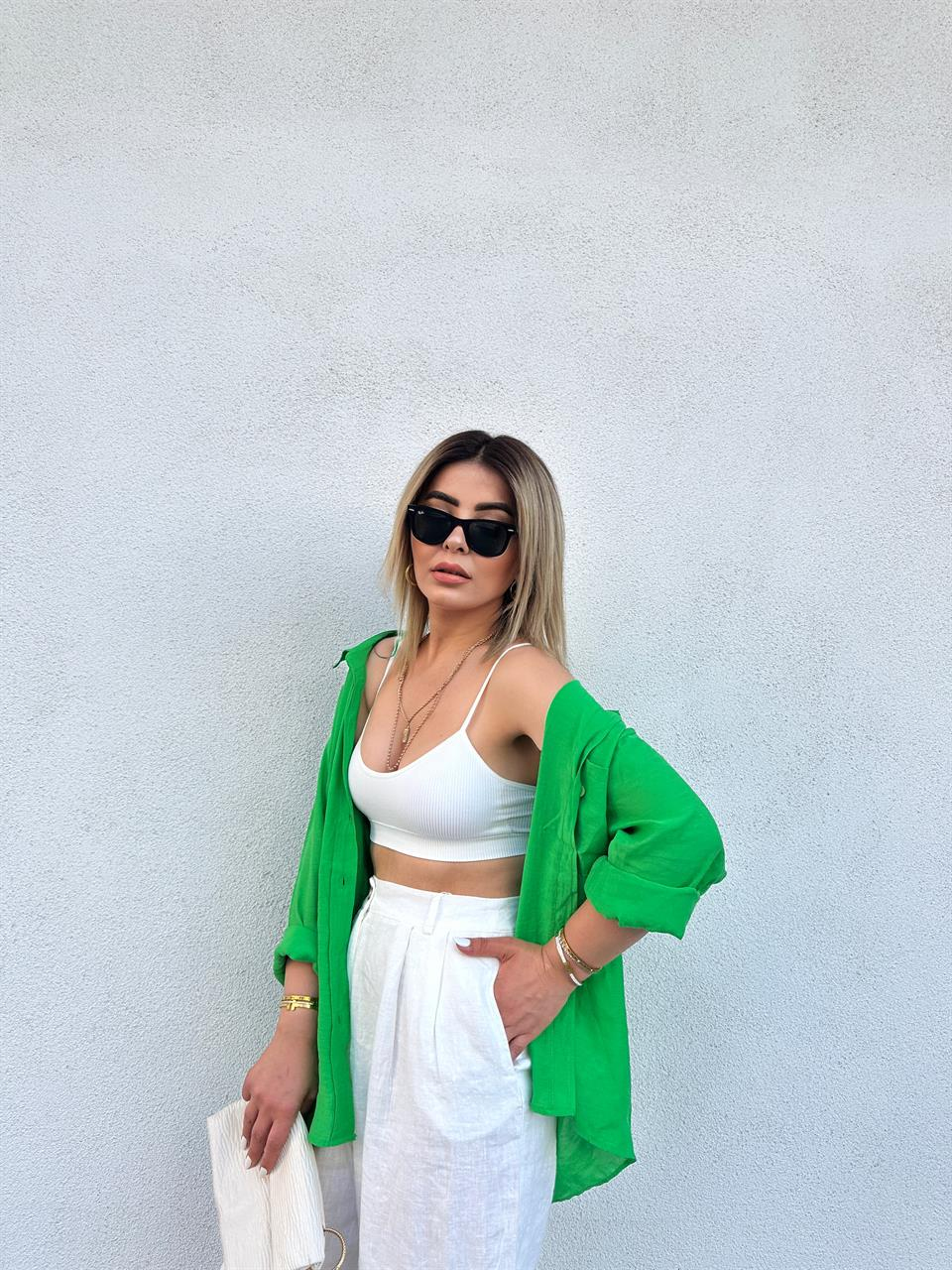 Çimen Yeşili Oversize Tensel Gömlek