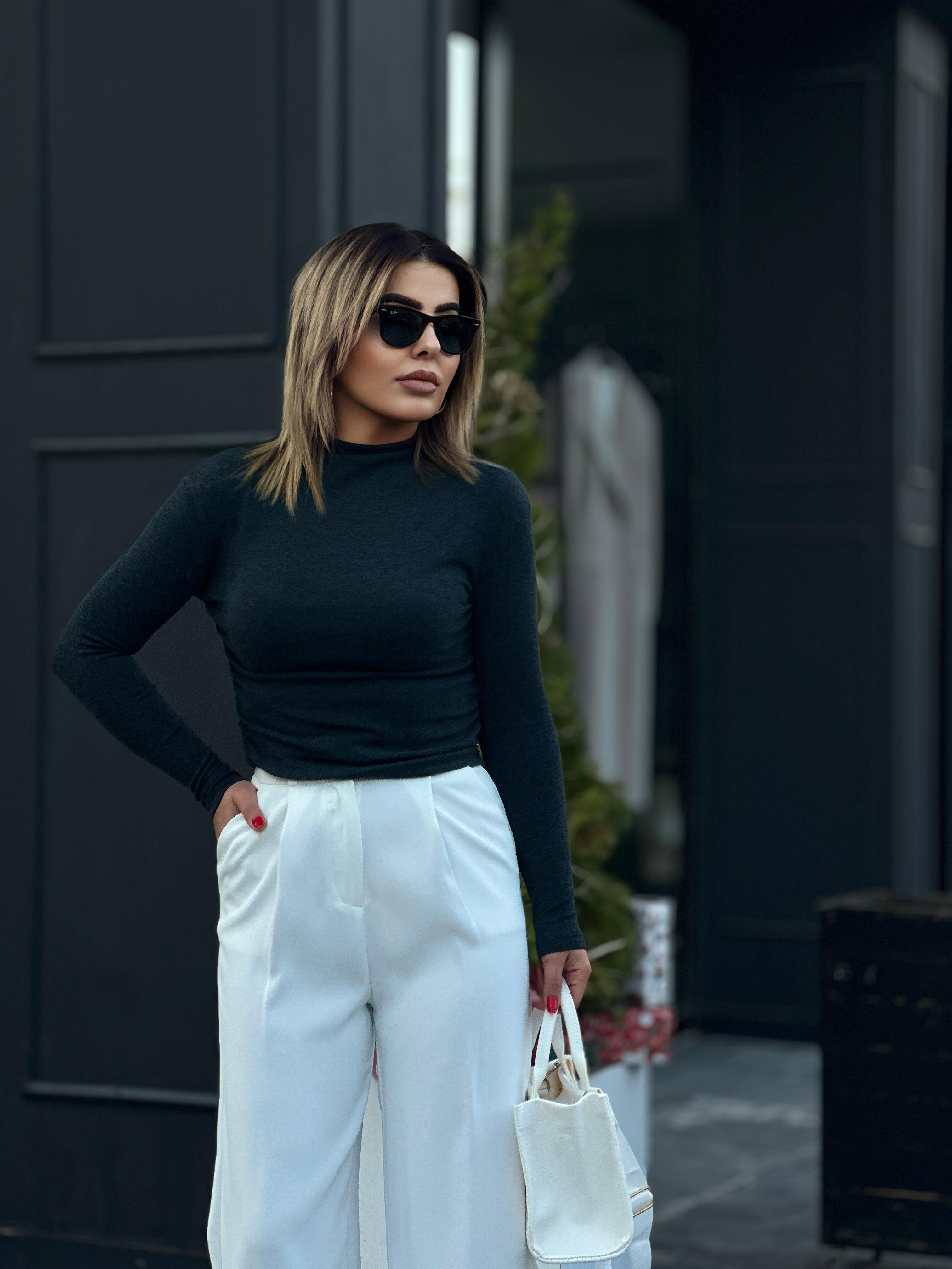 Füme Dik Yaka Yandan Büzgülü Triko Bluz