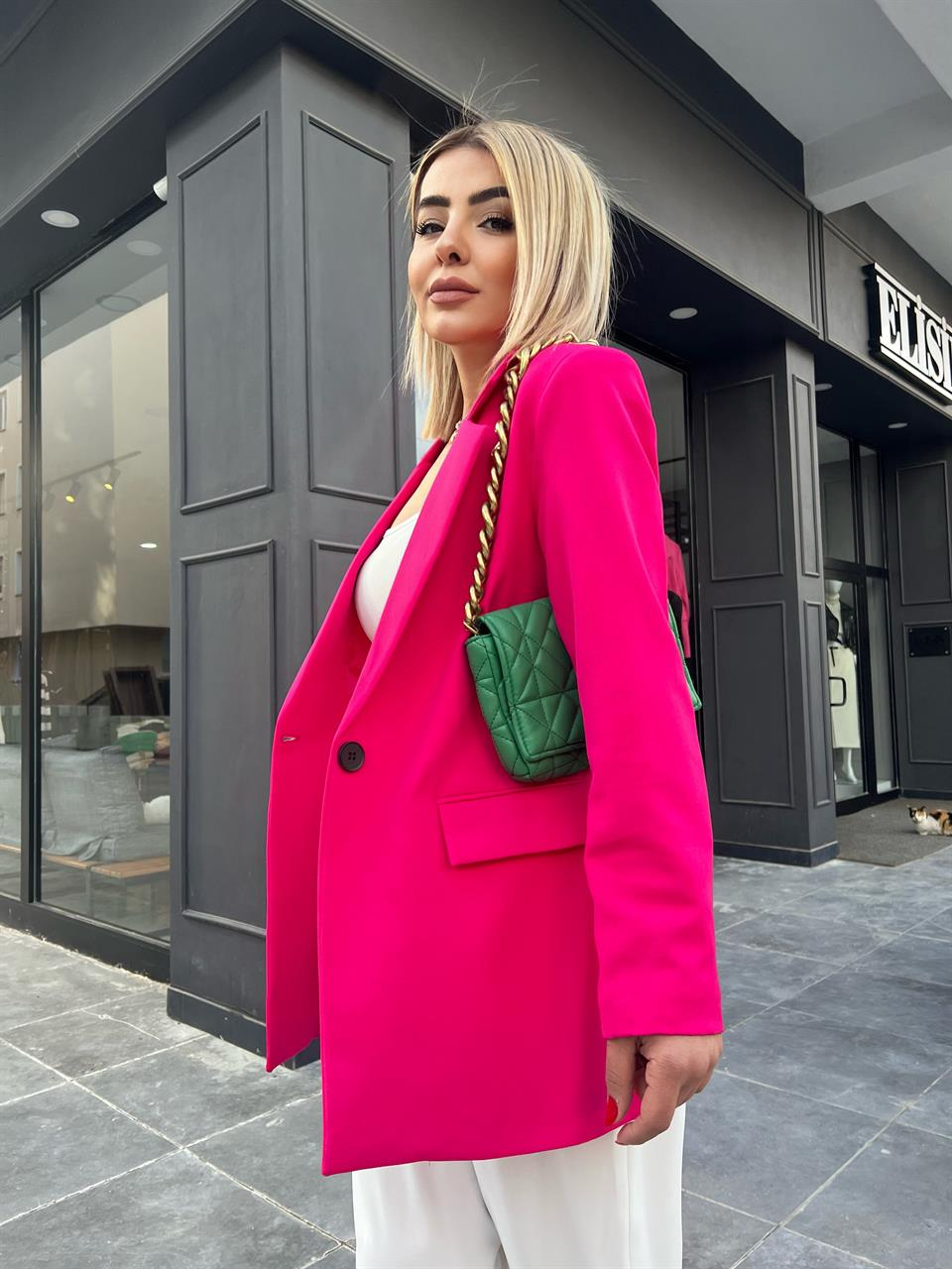 Fuşya Atlas Kumaş Tek Düğme Blazer