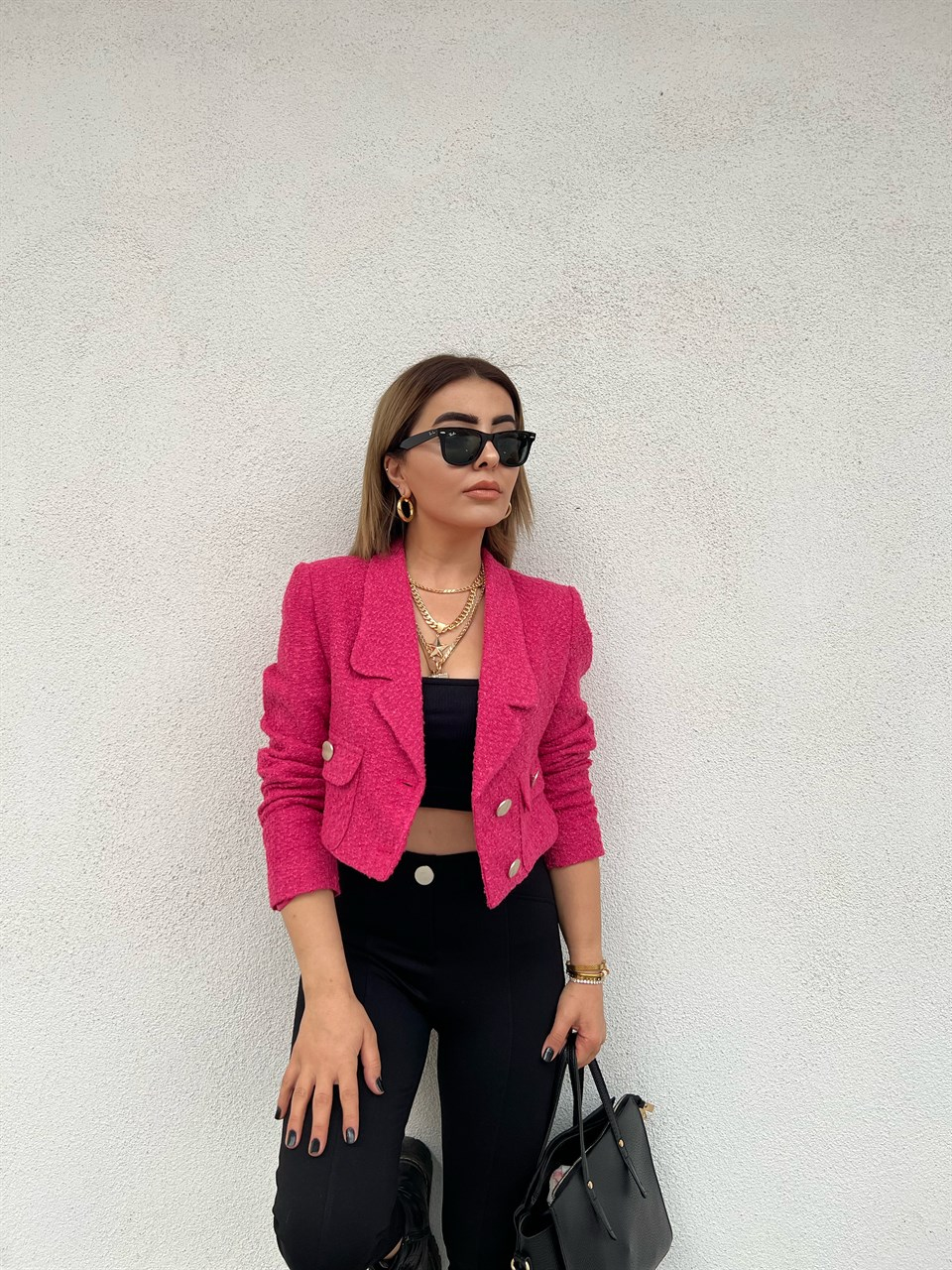 Fuşya Kısa Buklet Ceket