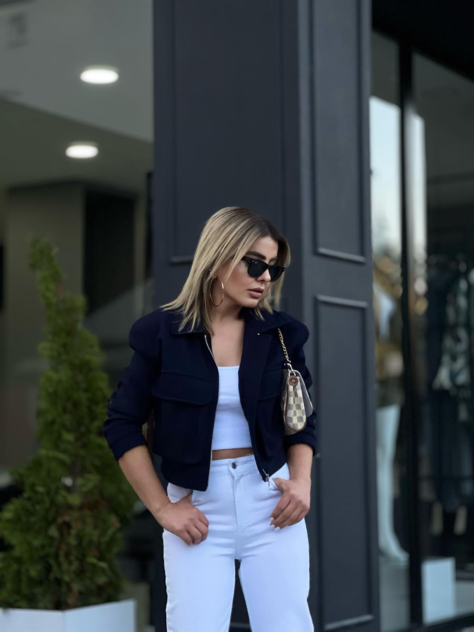 Lacivert Kapak Cepli Kaşe Ceket