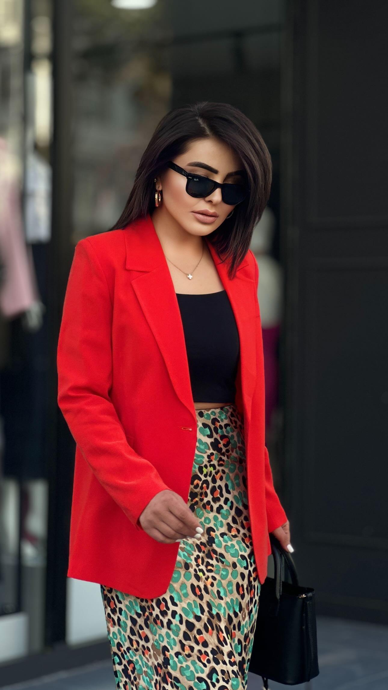 Nar Çiçeği Kol Yırtmaçlı Astarlı Tensel Doku Blazer Ceket