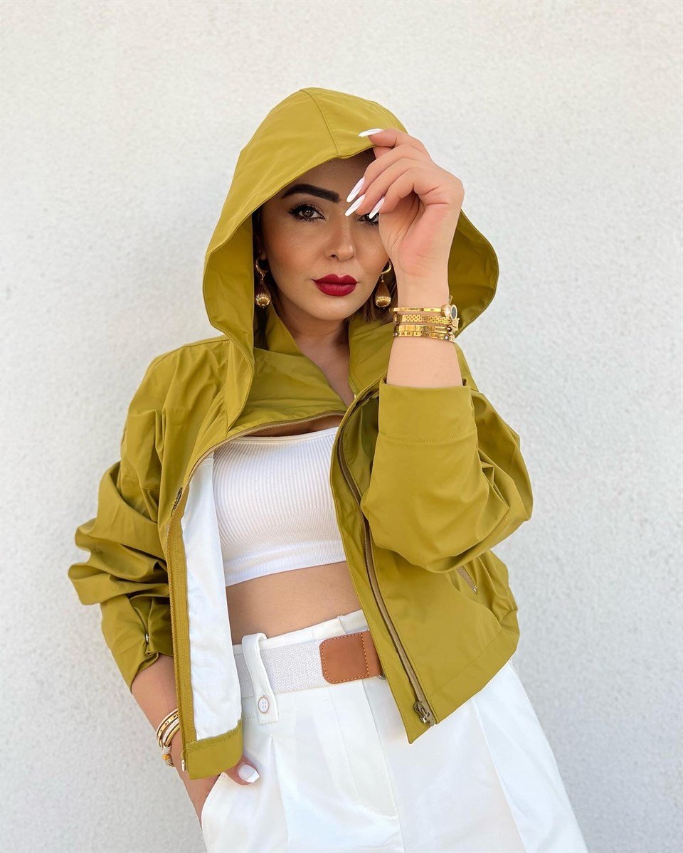 Olive Kısa Kapüşonlu Trençkot