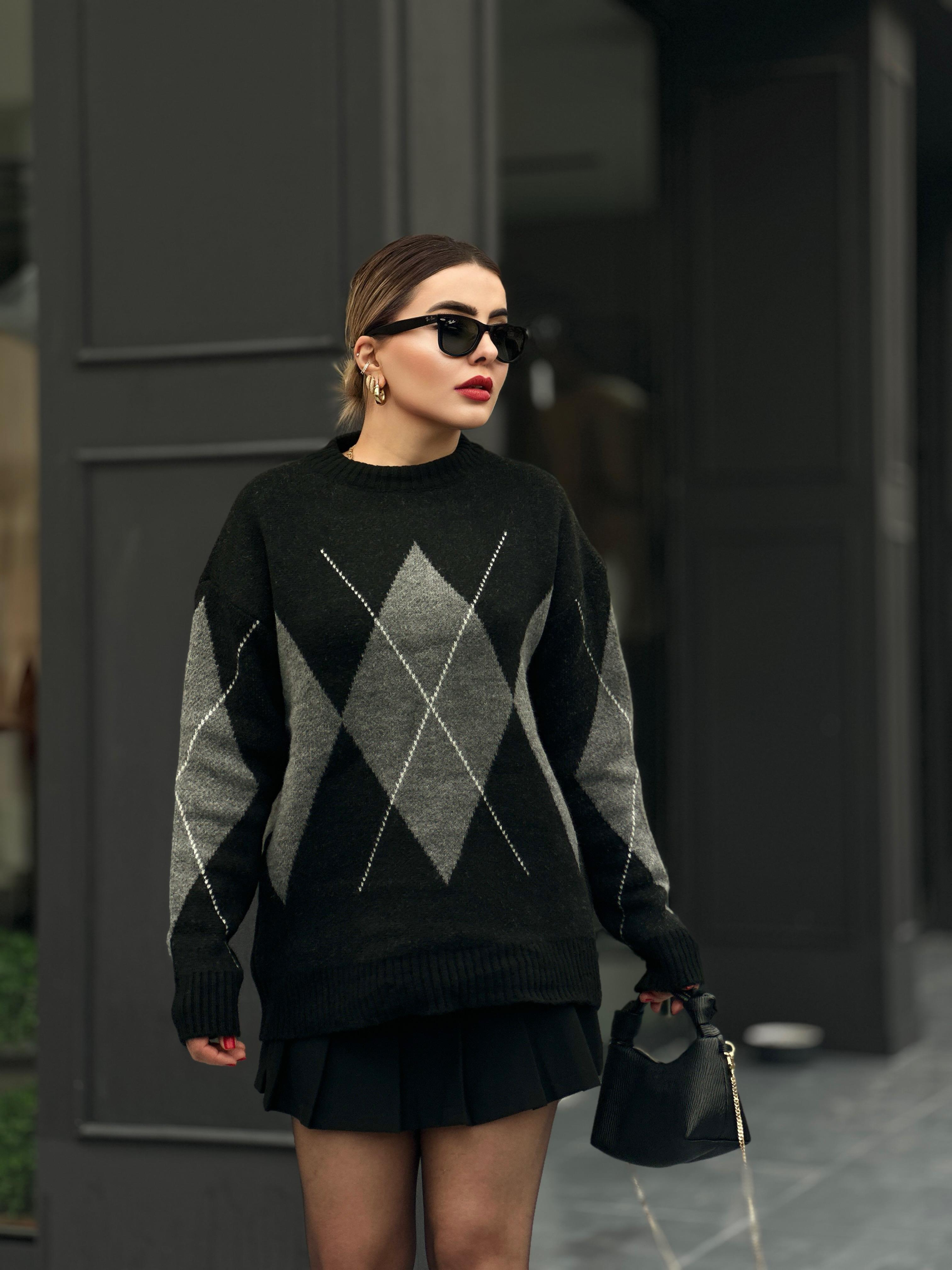 Siyah Antrasit Baklava Desenli Kazak