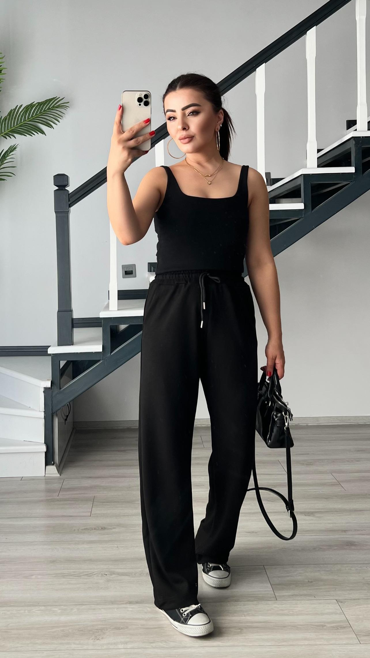 Siyah Modal Bel Lastikli Pantolon
