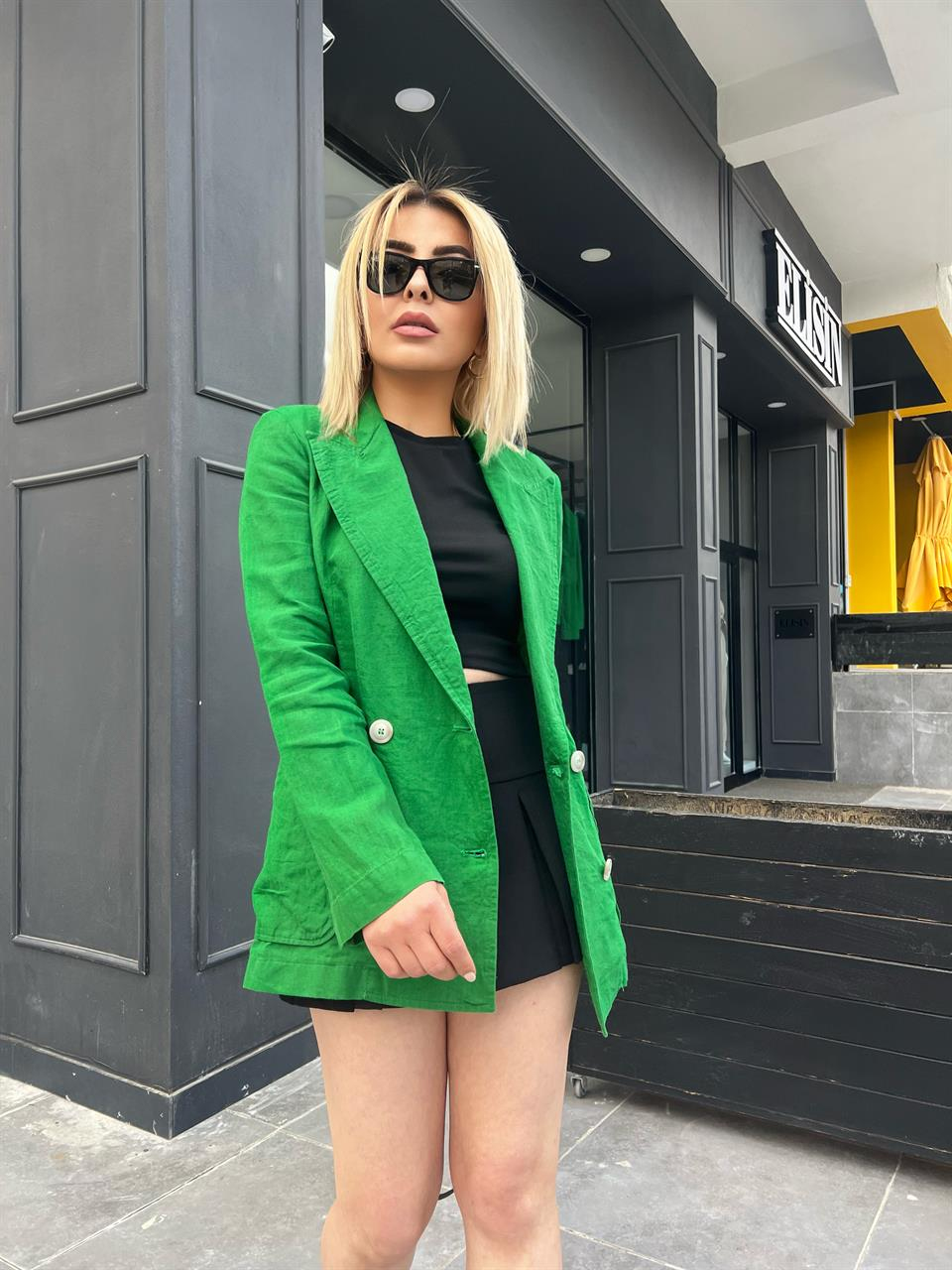 Yeşil Ham Keten Blazer Ceket
