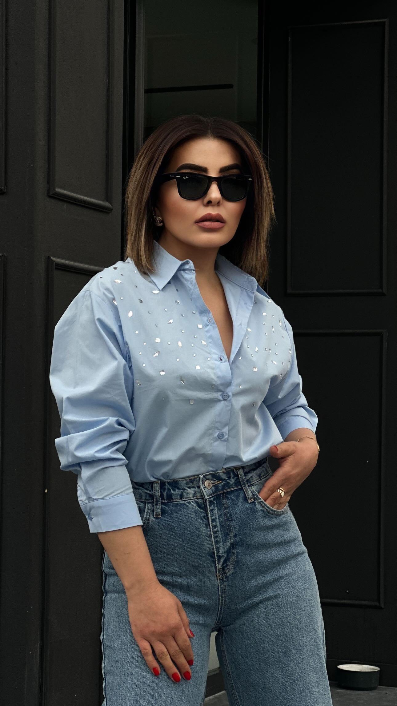 Zr Model Taş İşlemeli Poplin Gömlek